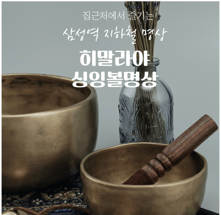 도심속 웰니스 , 싱잉볼명상과 동네한바퀴, 몸과마음의 이완, 사무실에서 가까운 삼성역 힐링센터에서 쉽고 편하게 체험하기. 스마트스토어 바로가기 문의하기